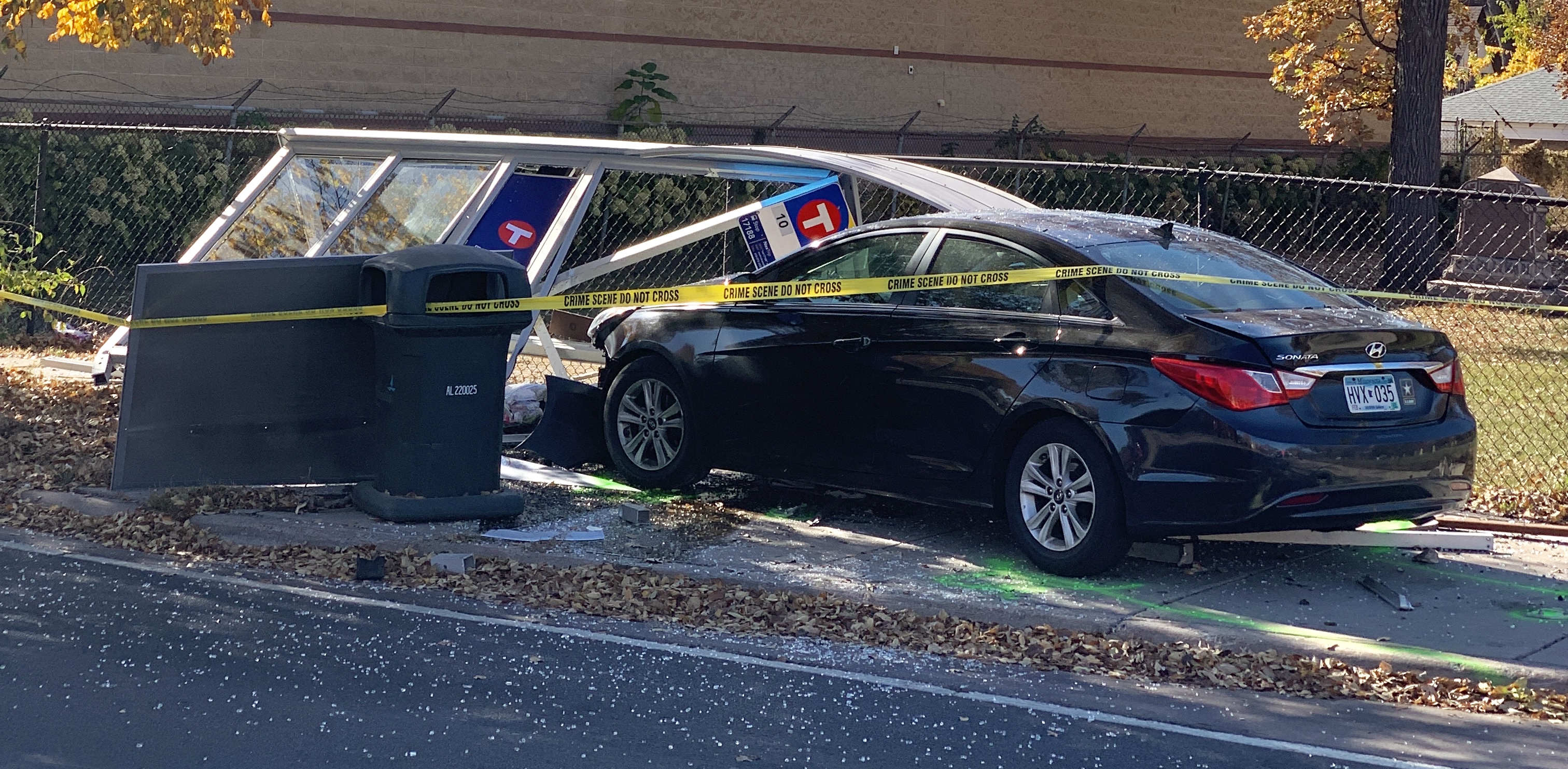 Waiting at the bus shelter on Nicollet Mall.